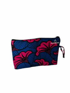 Cette pochette en tissu wax a été fabriqué entièrement à la main. Une fabrication artisanale où chaque produit et motif raconte son histoire. Ici, le motif en tissu wax intitulé « Fleur de mariage ».